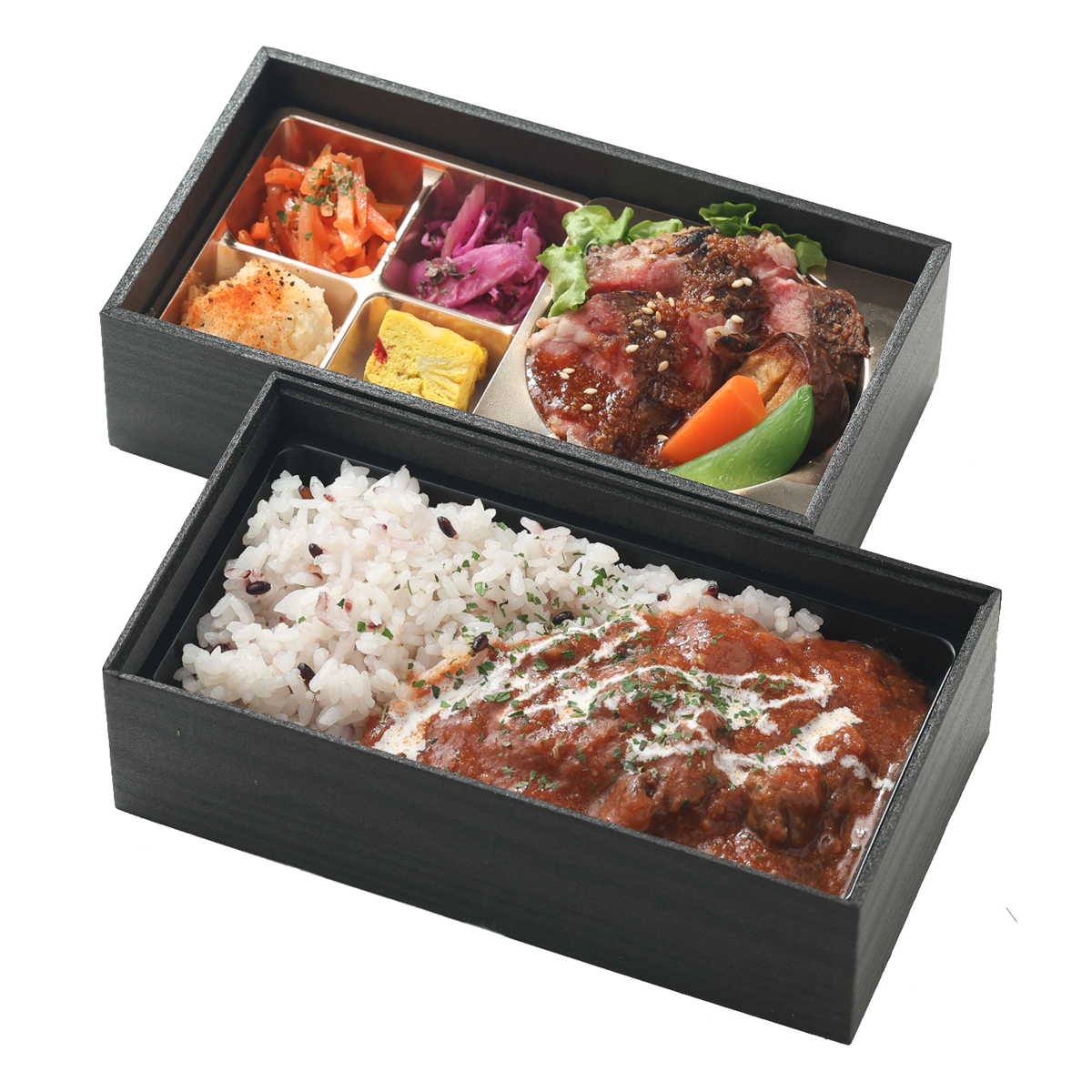 カエデ二段 ~特製ハッシュドビーフ&リブロースステーキ~
